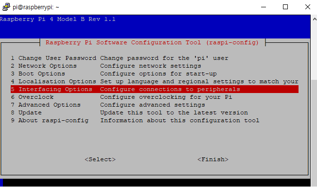 Interfacing Options를 선택한 후 엔터를 눌러줍니다.