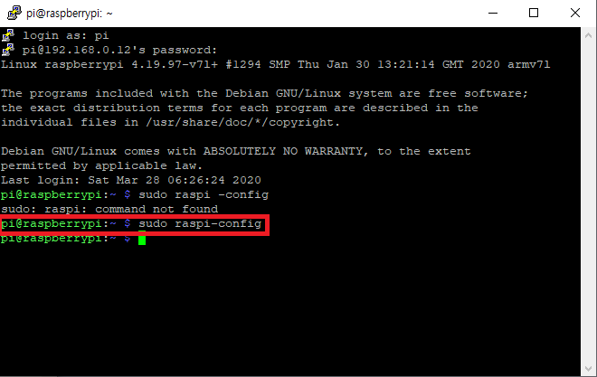 물론 이전글에 따라 이미지를 설치하고 라즈베리파이에서 처음 부팅하면 환경설정에서 "pi" 비밀번호를 다시 설정할수 있다.