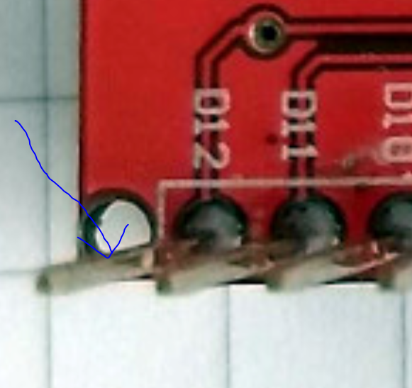 해결하기 위해서는 뒷면의 PCB를 글어내면 된다. D12, D11 사이에 있는 비아(관통하여 뒷면과 연결해주는)홀이 연결되어 있기 때문이며, 비아홀과 연결을 자르되 기존 연결은 유지하는 신공(?)을 발휘해야 한다.