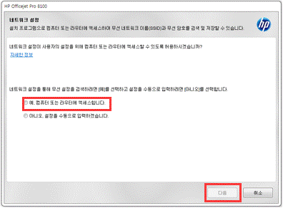 6. 컴퓨터가 이미 연결하고자 하는 공유기에 연결되어 있으면 를 클릭하고 다음 항목을 클릭합니다.