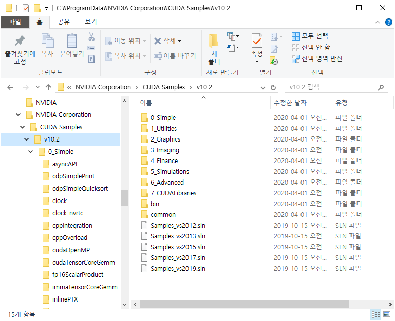 설치를 완료하면 Cuda Sample도 함께 설치된다.