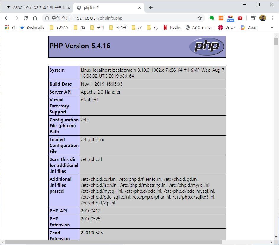 [참고] ■ 실제 PHP환경설정을 관리하는 파일은 아래의 경로입니다. [root@localhost ~]# vi /etc/php.ini