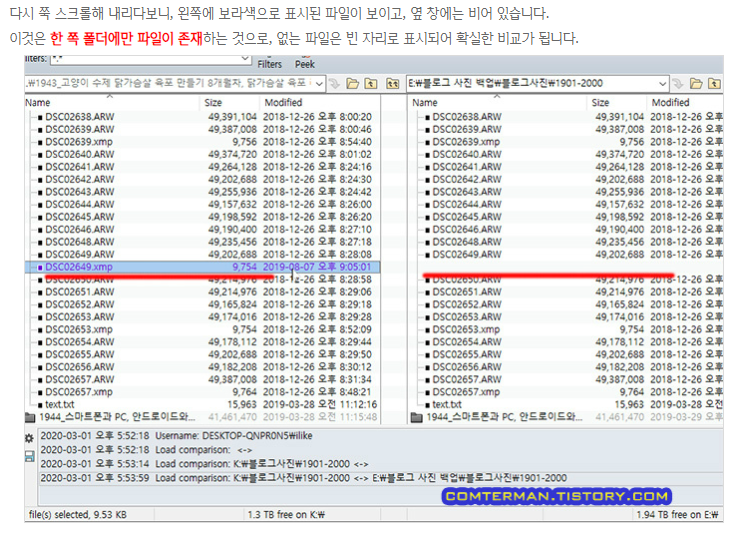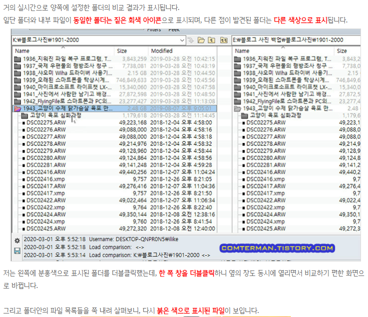 다수의 폴더, 파일 비교 오랫동안 블로그를 운영하다보니 블로그 포스팅을 작성하면서 찍고 편집한 사진들, 그리고 포스팅으로 올렸던 텍스트들을 분기별로 백업하고 있습니다. 저는 백업 수단