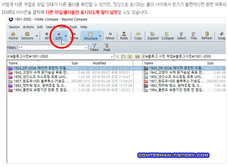 폴더 내 파일 목록 비교 프로그램 Beyond Compare. 빠르고 간결한 파일/폴더 비교 기능