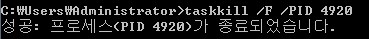 6. taskkill /F /PID 4920 명령어로 해당 프로세스를 종료 합니다.
