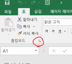 1. 홈 탭의 클립보드에서 클립보다 대화 상자 표시 아이콘을 클릭합니다.