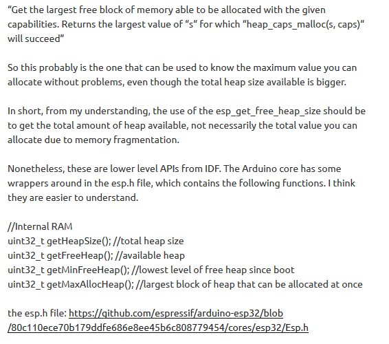- https://techtutorialsx.com/2017/12/17/esp32-arduino-getting-the-free-heap/