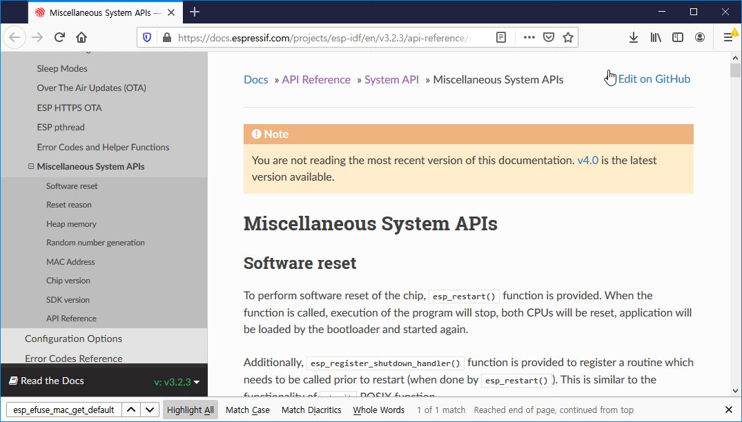 제가 사용하고 있는 ESP-IDF 버전이 v3.2.3-14 이므로, API 문서에서 v3.2.3 을 선택해서 확인 했습니다.