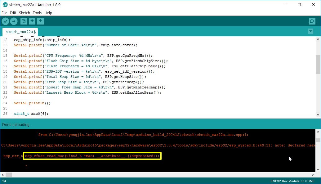 Serial.printf("ESP32 Chip ID = %04X", (uint16_t)(chipid>>32)); // print High 2 bytes