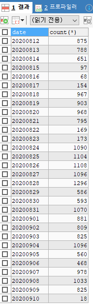 SELECT DATE_FORMAT(rdate, '%Y%m%d') as date, count(*)