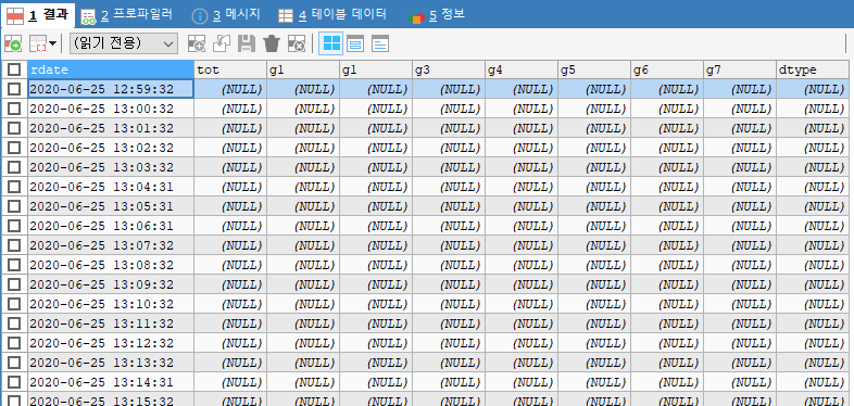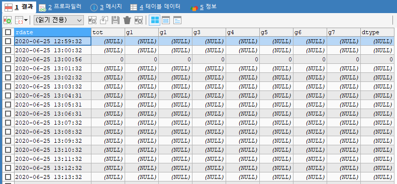 select rdate, tot, g1, g1, g3, g4, g5, g6, g7, g8 dtype from `cc_3f_test` where tot is null