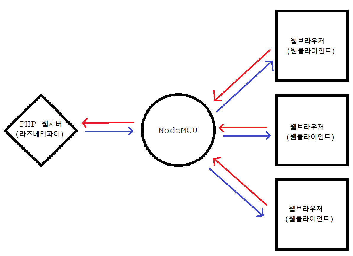 - NodeMCU 보드는 웹서버(웹브라우저 기준)이자 웹클라이언트(라즈베리파이 기준)