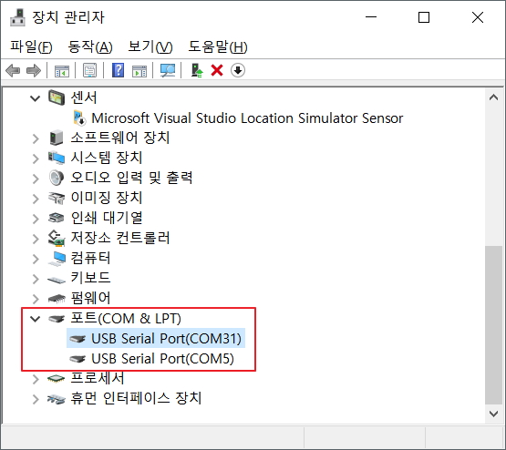 위의 장치관리자 화면에서 예를 든다면 다음과 같다.