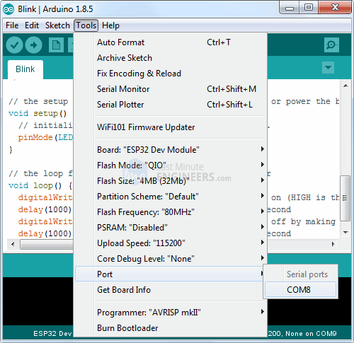 To make sure ESP8266 Arduino core and the NodeMCU are properly set up, we’ll upload the simplest sketch of all – The Blink!