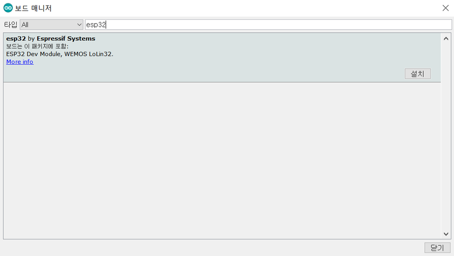 설치가 완료되면, ESP32를 사용할 준비가 완료됩니다.