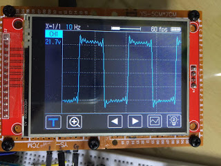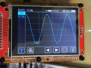 먼저 Display에 대한 소스코드는 생략 하기로 한다. 어차피 나 또한 인터넷에서 찾은 내용이며 향후 display에 대한 라이브러리가 업데이트되는 것을 고려한다면 원 제작자가 제공하는는 웹페이지에서 다운로드 받는 방법을 추천한다. 나는 이러한 라이브러리를 다운로드 받고, 이전에 만들어 놓은 한글 출력 코드를 추가하여 사용했다. (하지만 오실로스코프의 화면에서 한글을 볼 수는 없다. 쓰이는 글자라고는 Hz)