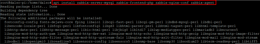 apt install zabbix-server-mysql zabbix-frontend-php zabbix-nginx-conf zabbix-agent