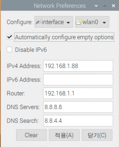 라즈베리파이가 DHCP를 이용하여 자동으로 IP를 설정하는 것을 비활성화하고