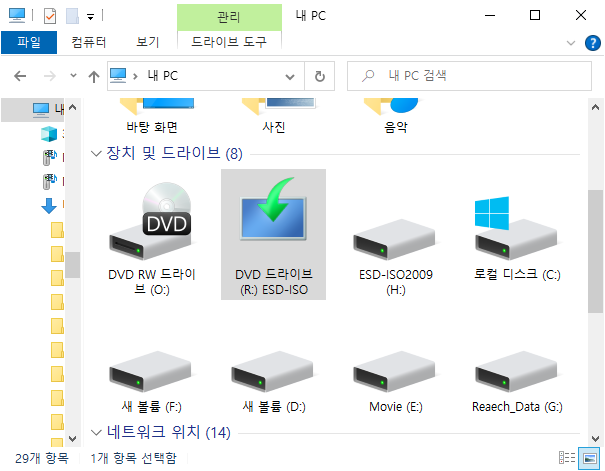 윈도우10 ISO 파일을 마우스 오른쪽 버튼으로 클릭한 다음 ‘탑재’를 클릭해 ISO 파일을 마운트 합니다.
