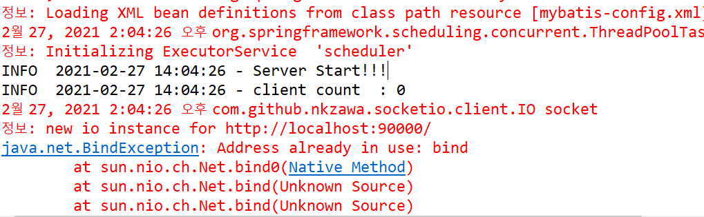 개발자 PC에서 어떤 포트를 여러번 호출하면 사용중이라는 에러가 난다.