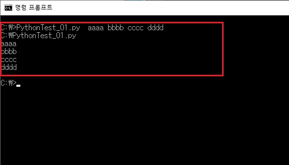 인덱스 [0] 부터 순서대로 파이썬파일명, 첫번째 매개변수, 두번째 매개변수, 세번째 매개변수, 네번째 매개변수 순으로 출력이 됩니다.