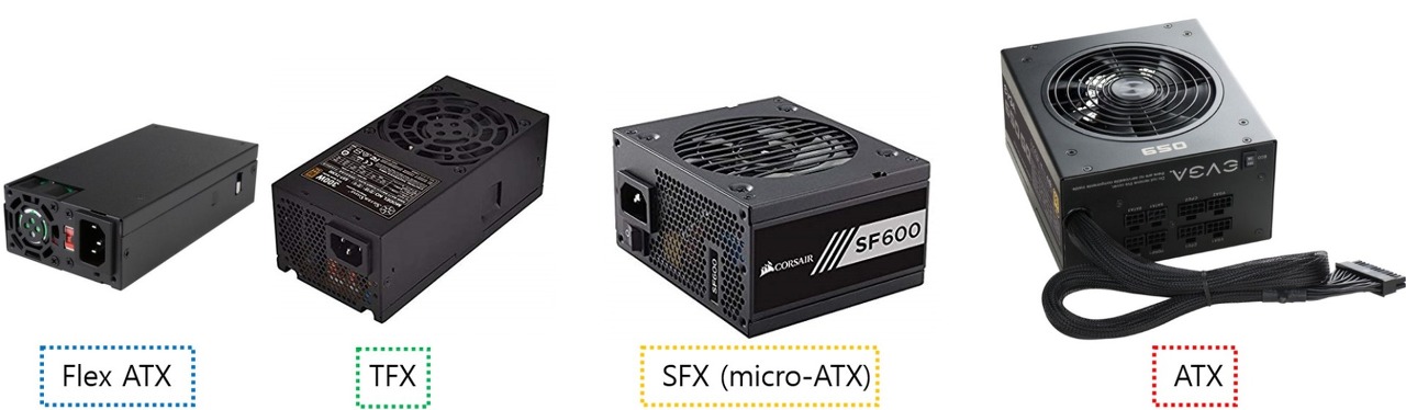 전원공급장치 외형 크기에 따른 분류(폼팩터)는 아래와 같다(나무위키 참조)