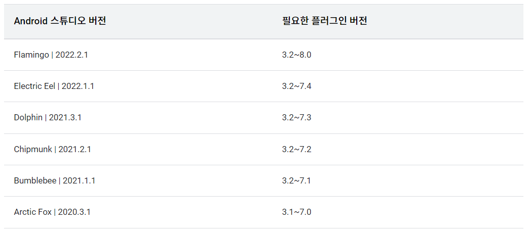 Android 스튜디오 버전필요한 플러그인 버전