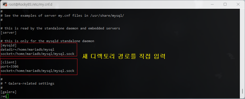 [root@Rocky85 /]# vi /etc/my.cnf.d/server.cnf  [추가 후 저장]