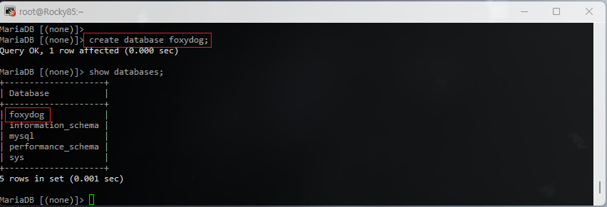 MariaDB [(none)]> create database foxydog;