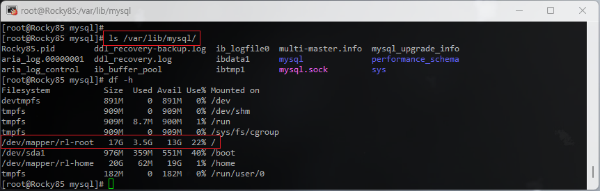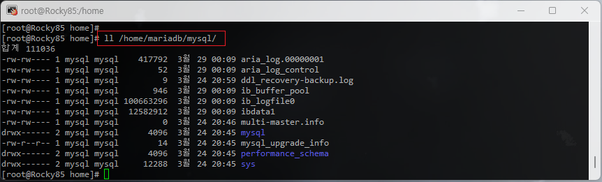 [root@Rocky85 /]# ll /home/mariadb/mysql/