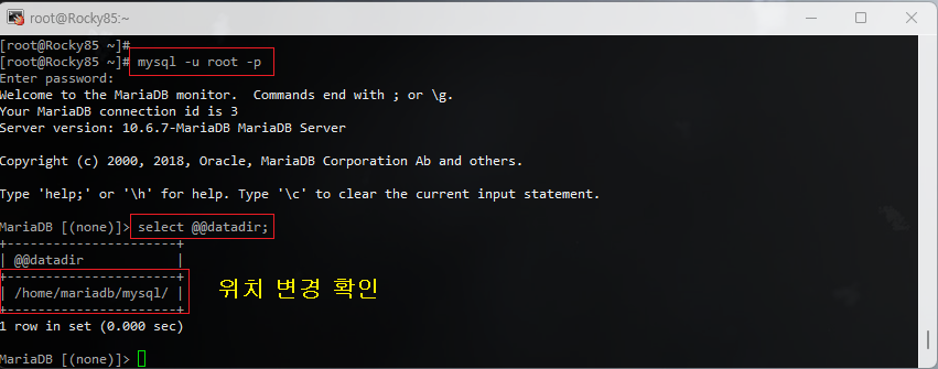 MariaDB [(none)]> select @@datadir;  [기본 데이터 디렉토리 경로 확인]
