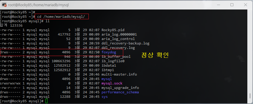 drwxr-xr-x  3 mysql mysql (권한 확인)  4096  3월 29 00:24 mariadb