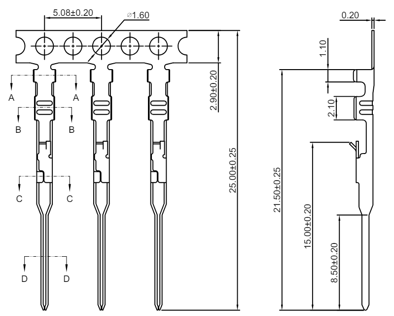 우측 부분은 A2547HA-XP Housing With Lock 에 사용되는 터미널은 CJT A2547-T-B series Terminal이다.
