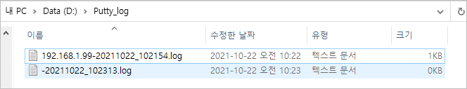 이렇게 하면 지정된 폴더에 접속한 호스트 명과 접속한 날짜 시간 파일명으로 로그 파일이 생성된다.