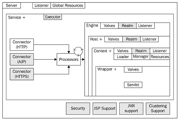 Tomcat은 다음과 같은 컴포넌트로 구성된다. 참고자료
