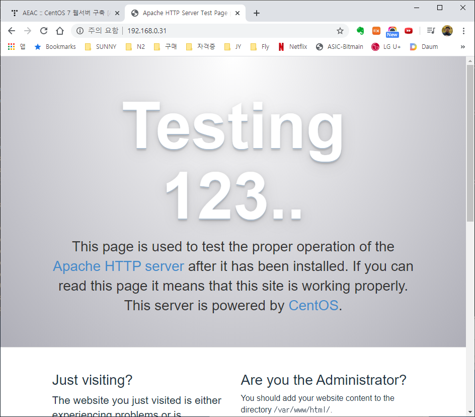 개인 PC에서 인터넷창에 접속 테스트를 진행하면 됩니다.