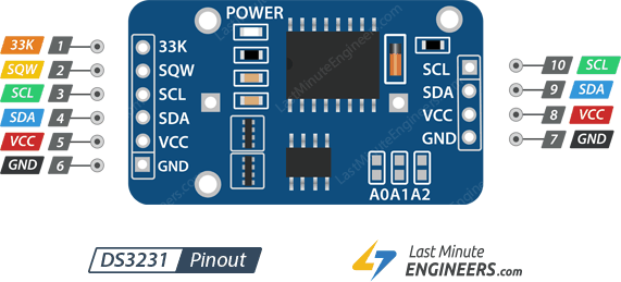 DS3231 RTC 모듈은 무제한 읽기-쓰기주기를 갖는 Atmel의 32 바이트 24C32 EEPROM 칩과 함께 제공됩니다. 설정 등을 저장하는 데 사용할 수 있습니다.