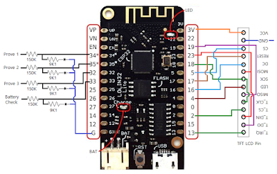 위의 표를 참조로 해서 ESP32의 아날로그핀으로 측정한 경우 전압은 아래와 같다는 것을 알 수 있다. (이 수식은 분압과 관련된 내용을 이미 포함하고 있다. 순수한 전압 입력이 아니며 대략 10:1 정도로 분압된 상태이다. )