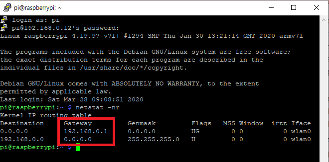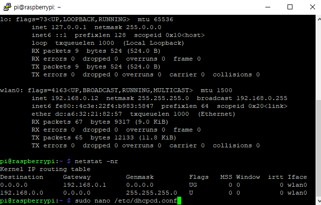 interface wlan0 #<-- 무선랜 사용시 wlan0라고 입력합니다.