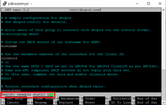 sudo nano /etc/dhcpcd.conf