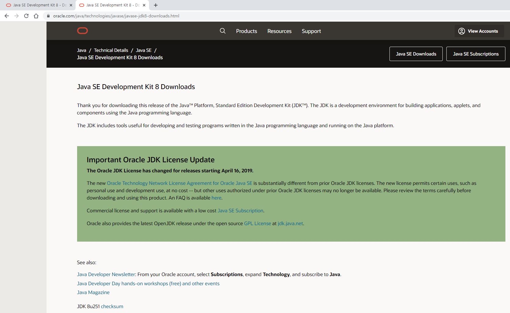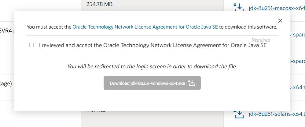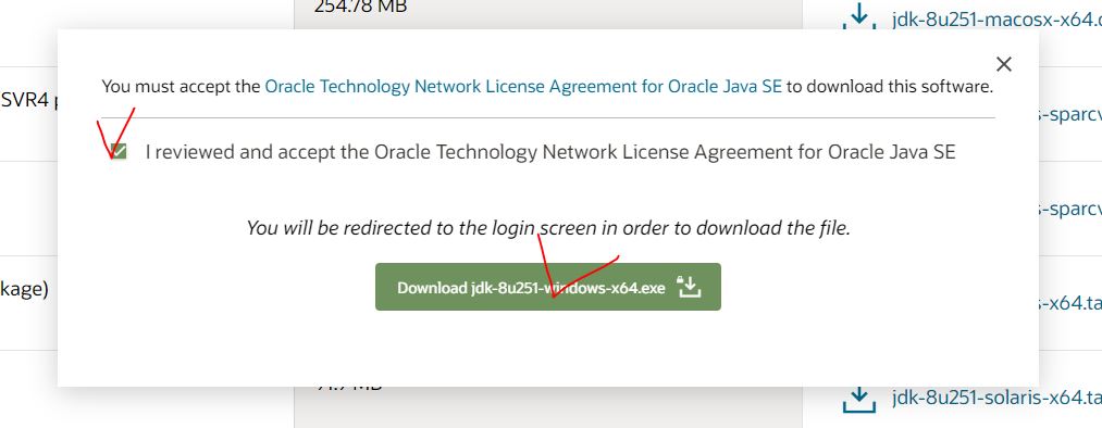 ▲ 체크박스 체크 해주신 후에 아래 보이는 박스 "Download jdk-8u251-windows-x64.exe" 클릭!!
