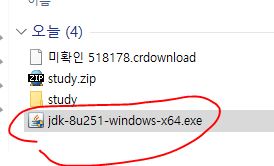 찾은 뒤 오른쪽 끝을 보시면 "jdk-8u251-windows-x64.exe" 라는 부분이 있어요.