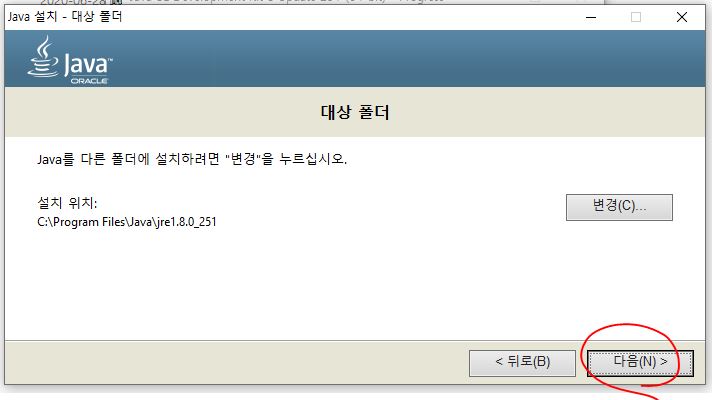 그대로 "Next" 누르시면 기본적인 위치인 "C:\Program Files\Java\jdk1.8.0_251\" 로 지정 됩니다.
