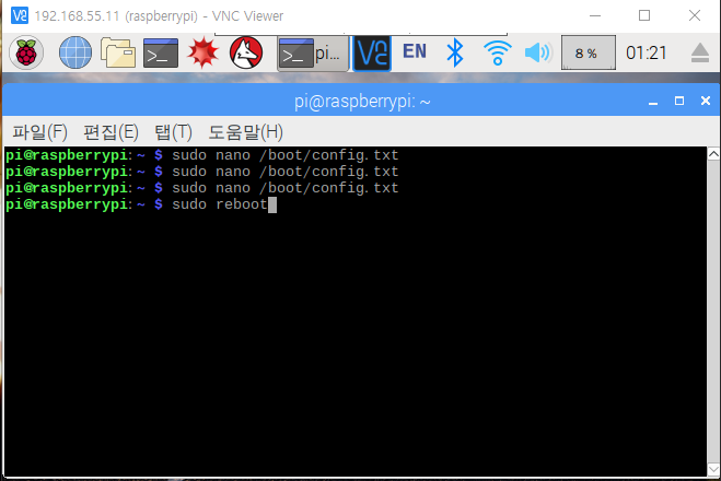 라즈베리파이 사용시 VNC뷰어 해상도를 변경하는 방법