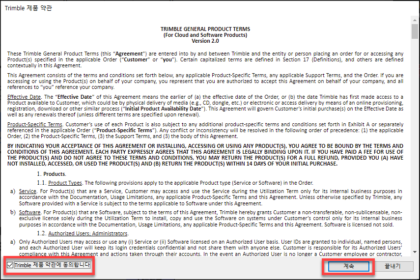 약관에 동의 하신 다음 계속을 클릭해 줍니다.