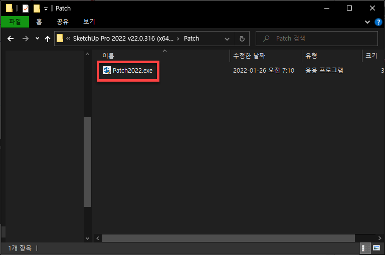 폴더 안에 Patch2022 파일이 있습니다. 프로그램이 완전히 종료 되셨다면 이 파일을 실행해 주세요