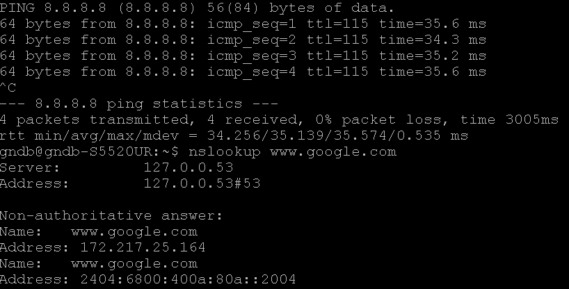 64 bytes from 8.8.8.8: icmp_seq=1 ttl=115 time=35.6 ms