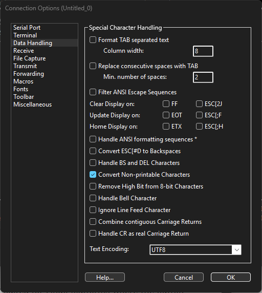 coolterm 2.3을 설치하고 아두이노에서 전송받으면 한글이 아래와 같이 깨진다.